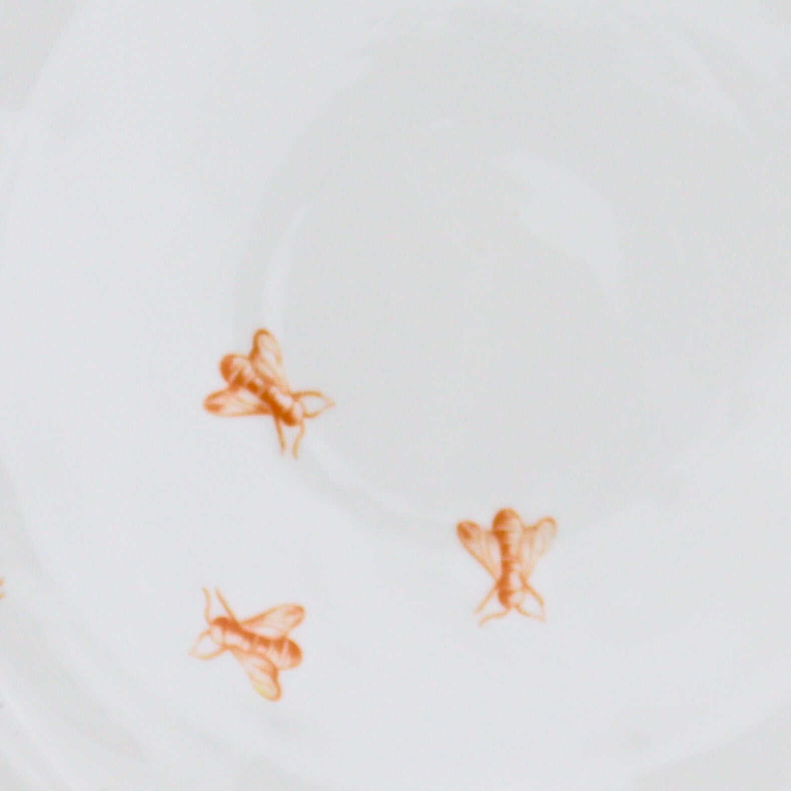 A solitary bumblebee, intricately sketched, claims a central place on this white scalloped dinner plate. Whether it's a sunlit brunch or candlelit dinner, this plate brings a touch of summer's fleeting beauty and the dance of the bumblebees while serving the main course.