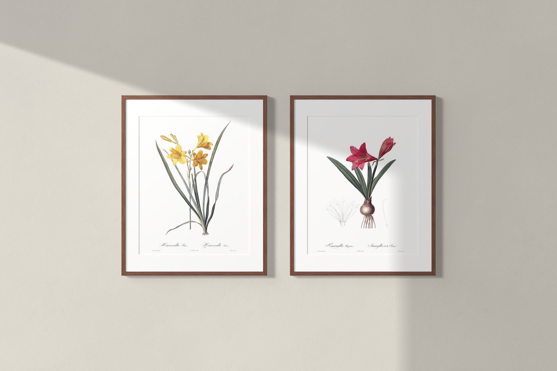 Exclusively designed and sold by Bloom & Wonder, these lovely vintage botanical illustrations were hand-drawn by Joseph-Pierre Redout in the early 1900's. They come framed in 100% real dark maple wood on premium archival matte paper and include custom matting.