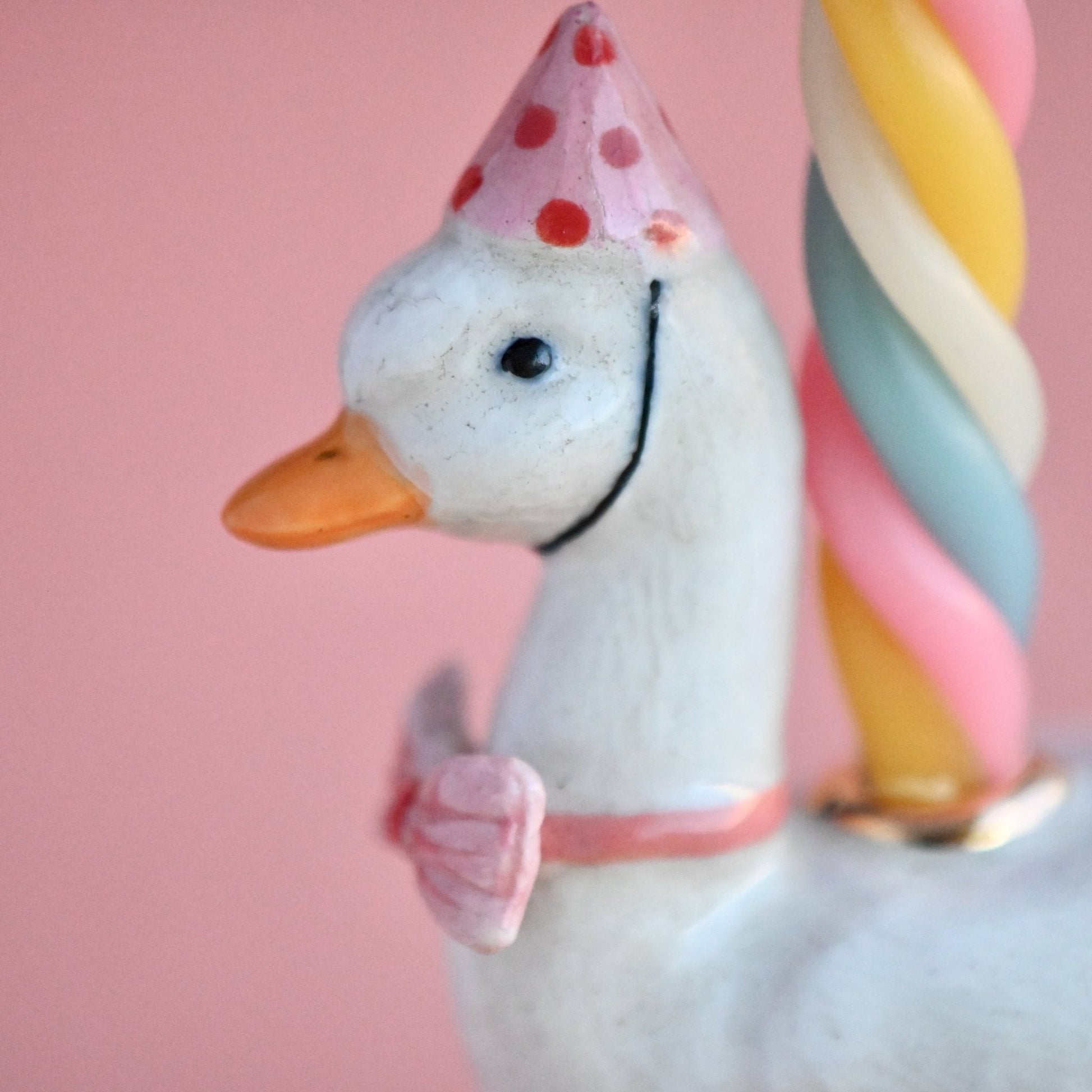 Pink Goose Porcelain Cake Topper - Hand Painted, Collectible Candle Holder