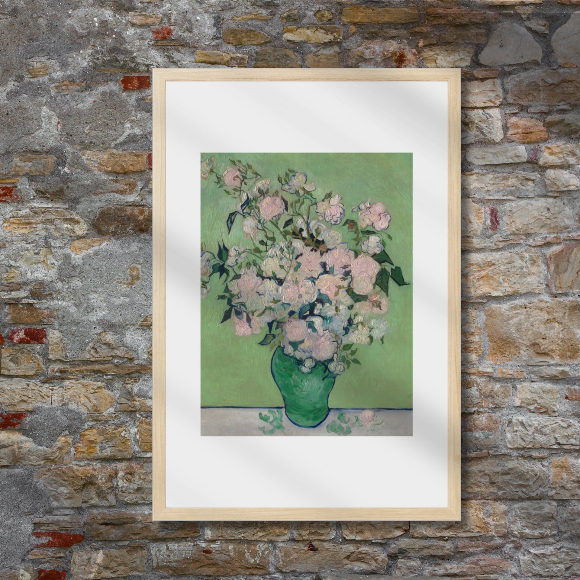 Framed in natural oak, custom matted, and printed on fine art textured German etching paper - a special, textured paper that enhances the textural look of Van Gogh's thick paint application.